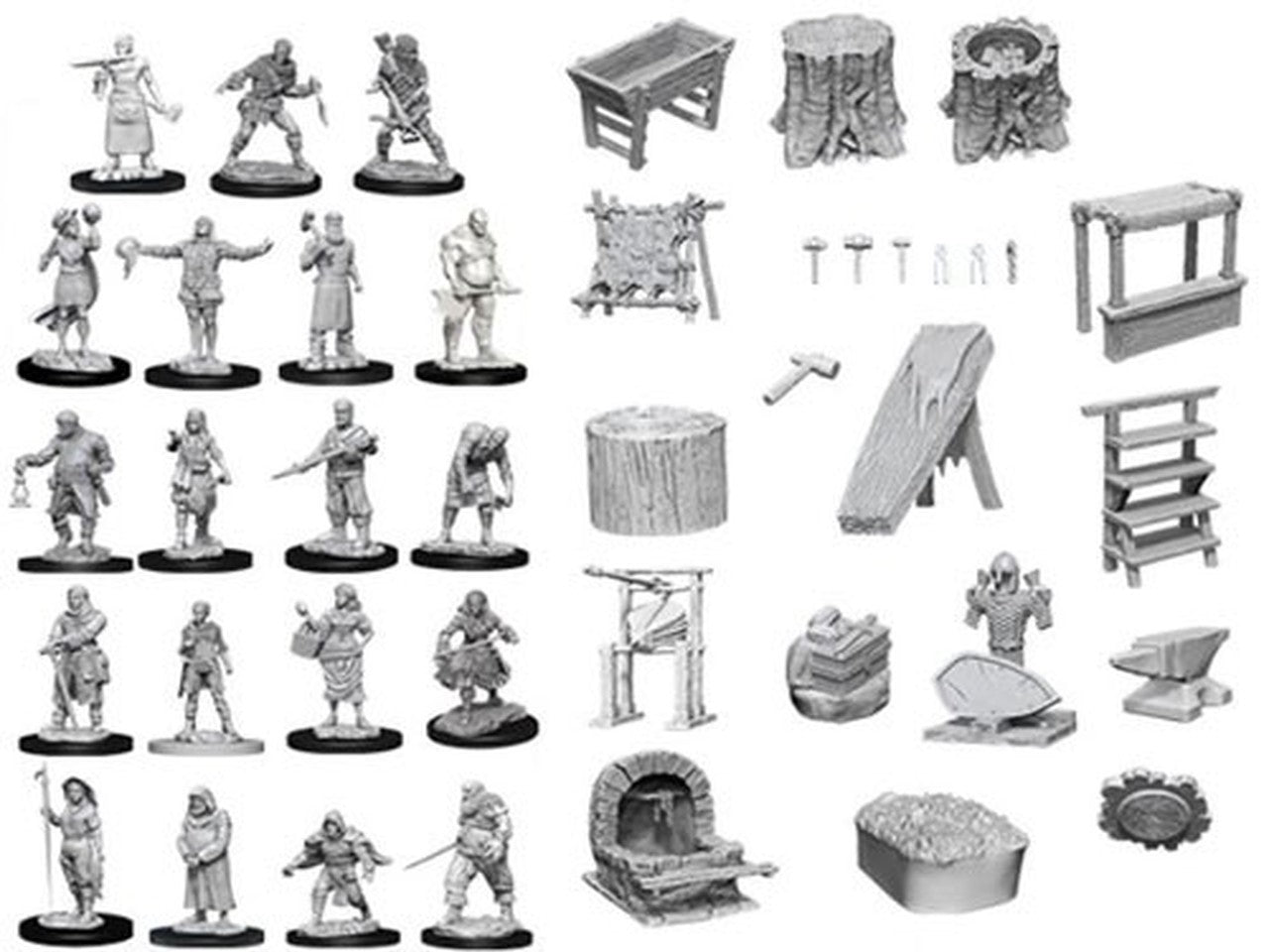 WizKids Deep Cuts Unpainted Miniatures: Townspeople & Accessories