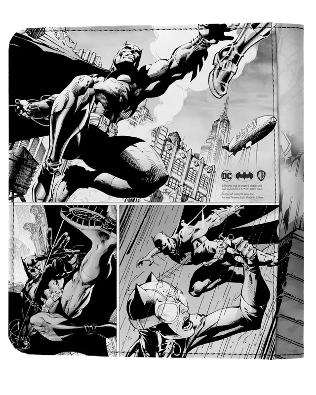 The Dark Knight graces the front and back of this stunning Card Codex. The dramatic black and white artwork is executed in true comic book style, and the portfolio stores up to 360 single sleeved cards. Part of a set of three; combine with the Matte Dual Art sleeves and silky smooth playmat to complete your collection.