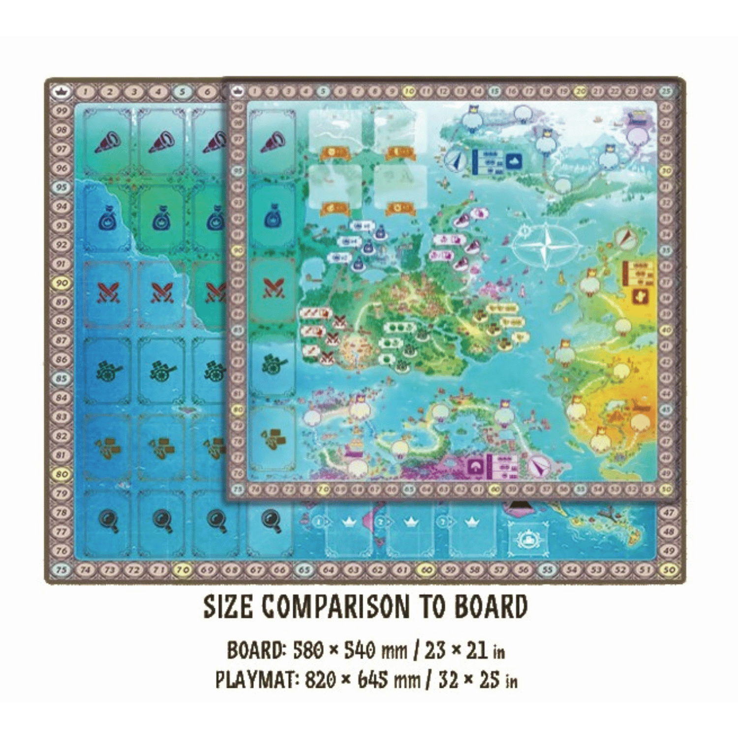 This deluxe playmat has pre-printed spaces for the expansion location, dedicated spaces for expansion components, and space for the display of cards.