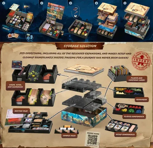Meet the Adventure Chest—a brand-new expansion to Lost Ruins of Arnak that features an original storage solution designed by CGE and fits all previously released Lost Ruins of Arnak content. The Adventure Chest box is bigger and sturdier than that of the base game—and it still fits into a certain board-gamer-favorite Swedish-made shelf! The insert itself is made of 8 individual boxes from layered PET material and is designed to make setup, play, and cleanup as easy as possible.