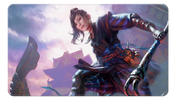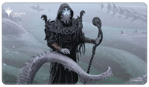 Commander Series Stitched Playmats feature popular artwork of your favorite Commanders from Magic: The Gathering! Made with a soft fabric top to reduce damage to cards during play and a non-slip rubber backing to keep the playmat from shifting during use, playmats enhance the gameplay experience. The stitched edges offer an added premium feel. With dimensions of approximately 24 in. x 13.5 in., a playmat also makes an excellent oversize mousepad for home or office.