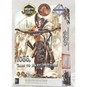 1066, Tears to Many Mothers is an asymmetric, competitive, tactical card game in the style of Magic the Gathering, but non-collectible. Both players, as either Normans or Saxons, muster their troops and resources to overcome the various obstacles in their way before the two armies clash on the battlefield at Hastings.