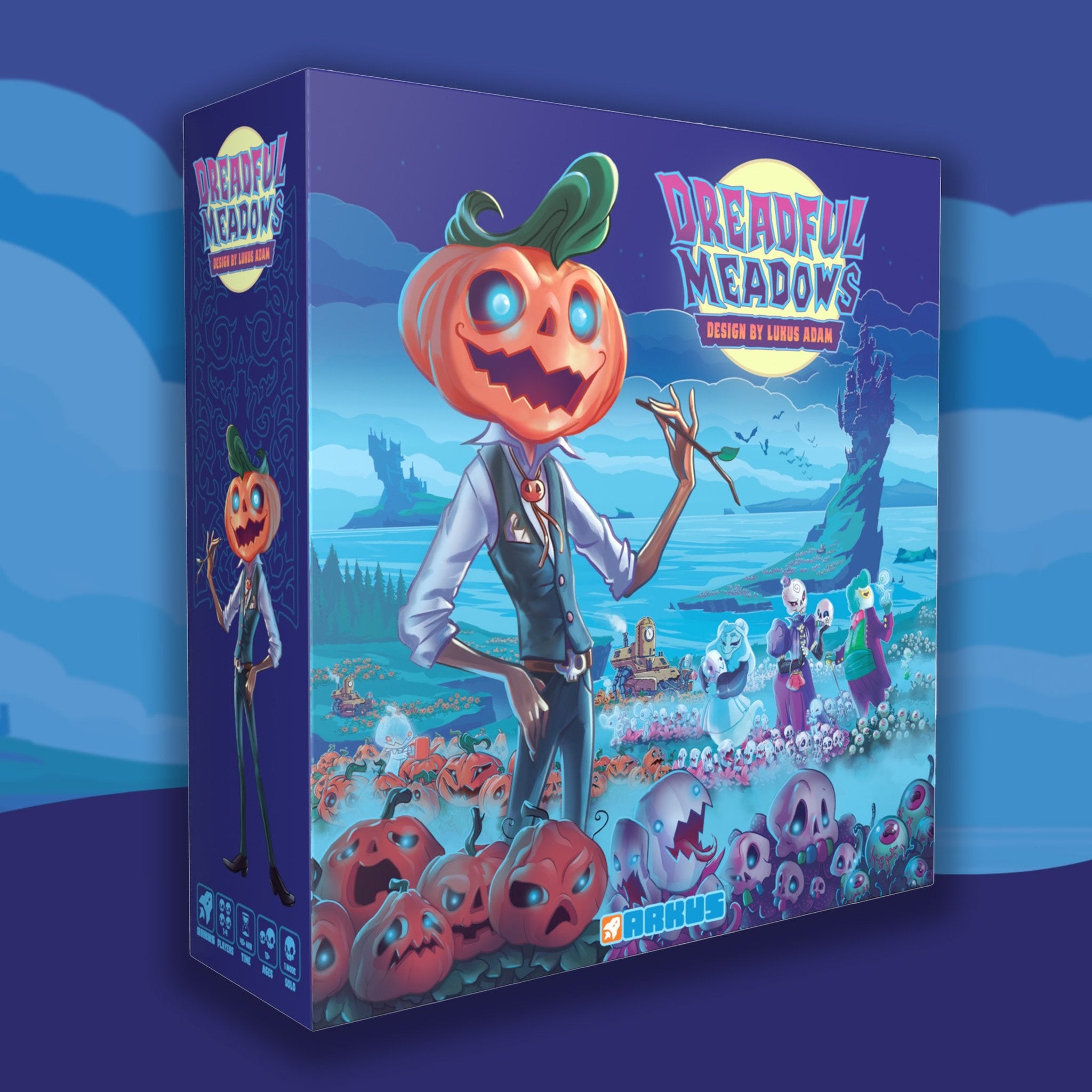 This bundle includes the Kickstarter Deluxe edition of Dreadful Meadows and the Tricks for Treats expansion!