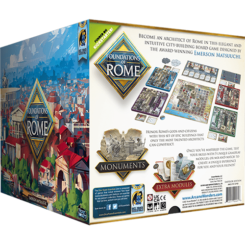 Foundations of Rome is the next, and biggest game to date, in the Dice Tower Essentials line and is designed by famed designer Emerson Matsuuchi.