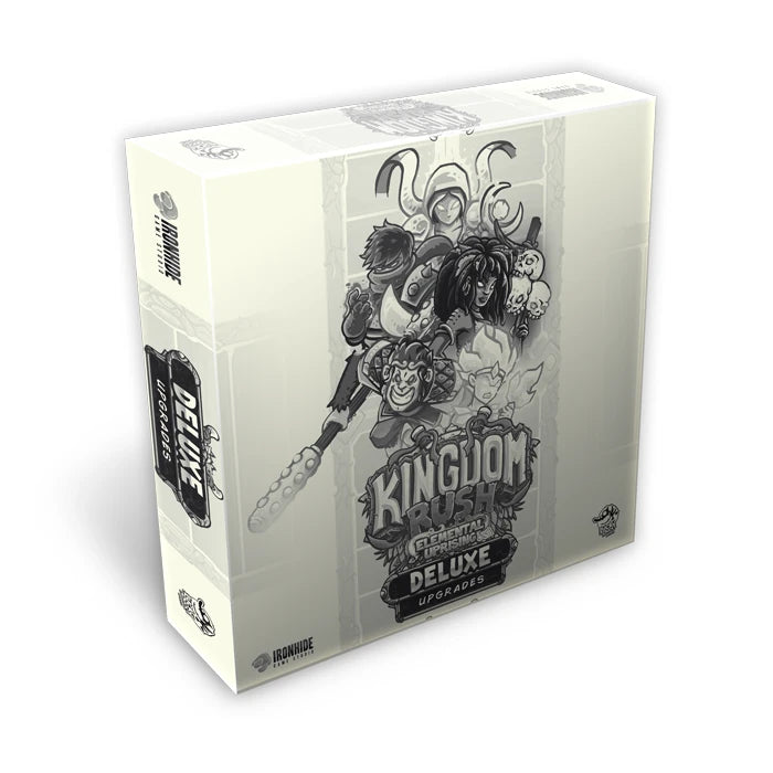 This item comes with the Kingdom Rush: Elemental Uprising Deluxe Upgrades box, adding storage trays, table organizers for towers and damage tiles, Hero Reference Cards, PLUS Knight and Sand Warrior miniatures.