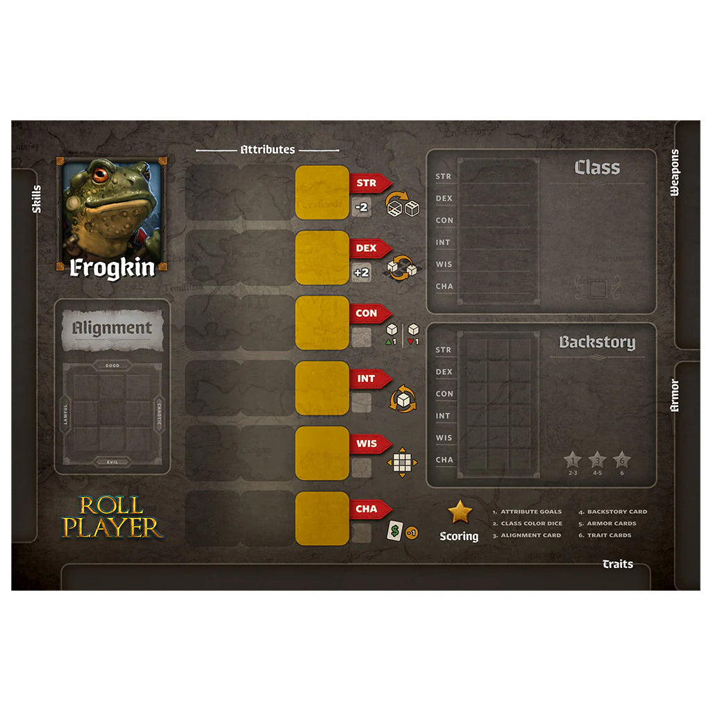 Play as the adorable Frogkin (either male or female as the character sheet is double-sided) in your next game of Roll Player.