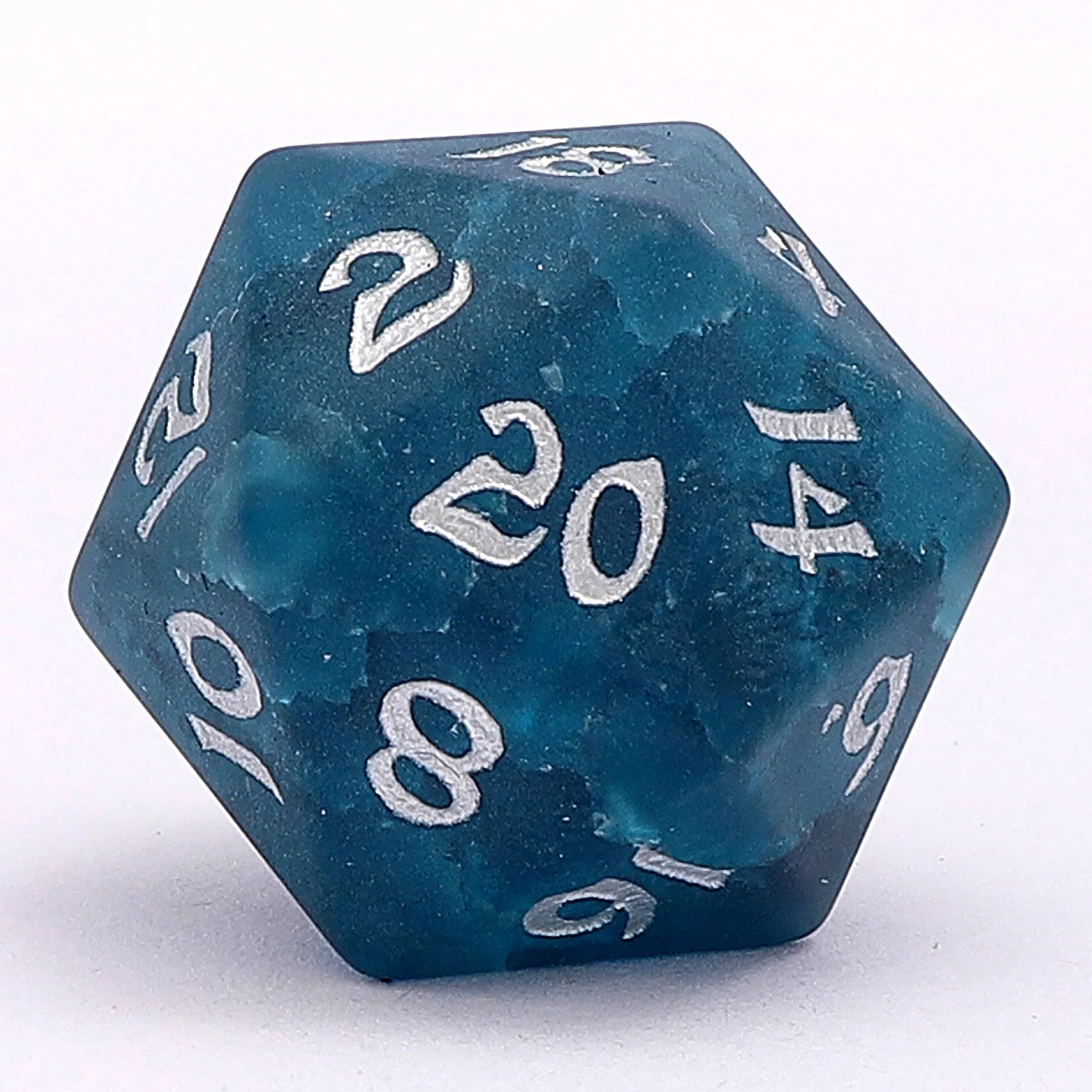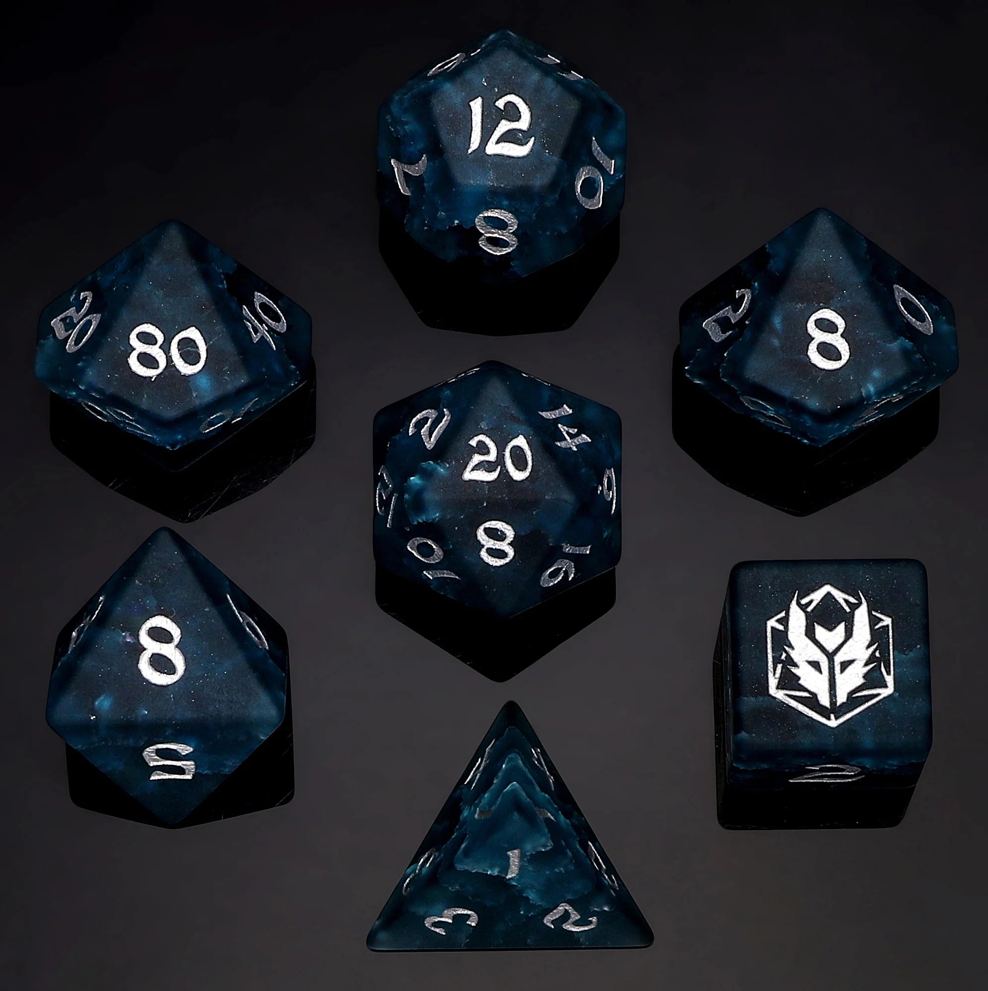 Dragon's Hoard Gem Stone Polyhedral Dice Set - Blasted Glass Frosted Dark Blue