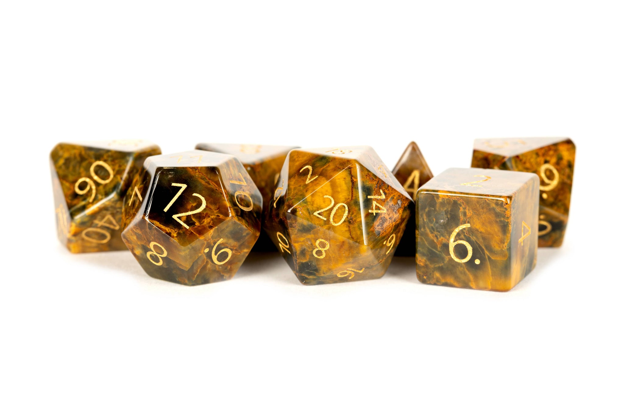Our Gemstone Dice are unmatched. Precision-carved out of high-quality gemstones, each die is a work of art. Right from your first roll you’ll appreciate the heavier feel compared to traditional dice. We do recommend rolling any stone dice on padded surfaces like our padded dice trays. Each die is engraved for the most premium gemstone experience.