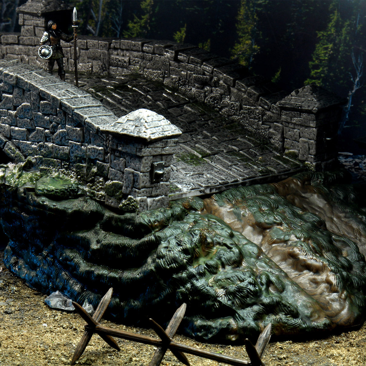 The Stone Bridge comes with a three-piece bridge, risers, two figures, and over 30 pieces of accessories that will allow you to configure your bridge to fit your needs. What adventures await your campaign? A deadly encounter with a troll? An escape from a pursuing rival army? Or possibly just another landmark along the way to the next destination.