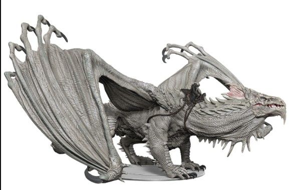 White dragons tend to be the smallest of the chromatic dragons, but Arveiaturace is enormous - crouched over and standing at 7.5 inches tall, this figure measures 16.5 inches from nose to tail with a wingspan of 17 inches. Whether intimidating your party of adventurers or standing guard on your shelf as a display piece, the ancient white dragon is hand painted, showing the detail of the sculpt and accentuating every jagged scale.