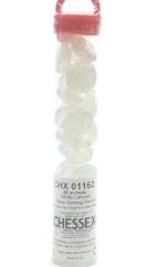 These glass gaming stones will help to keep you organized and are a great addition to any game. Use them to keep score, as counters and markers, or however you can imagine! Each stone measures ~12-15mm long, ~6-7mm tall and most are oval shaped . One side is flat so they easily rest on top of a surface. Receive approximately 40 stones in a tube.