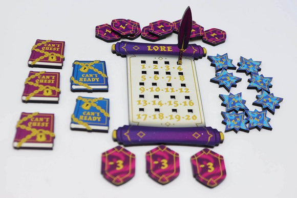 "Ancient relics of great power, Mythica Dark Copper uses an unpainted distressed gold finish which gave a delightfully dark but readable look.