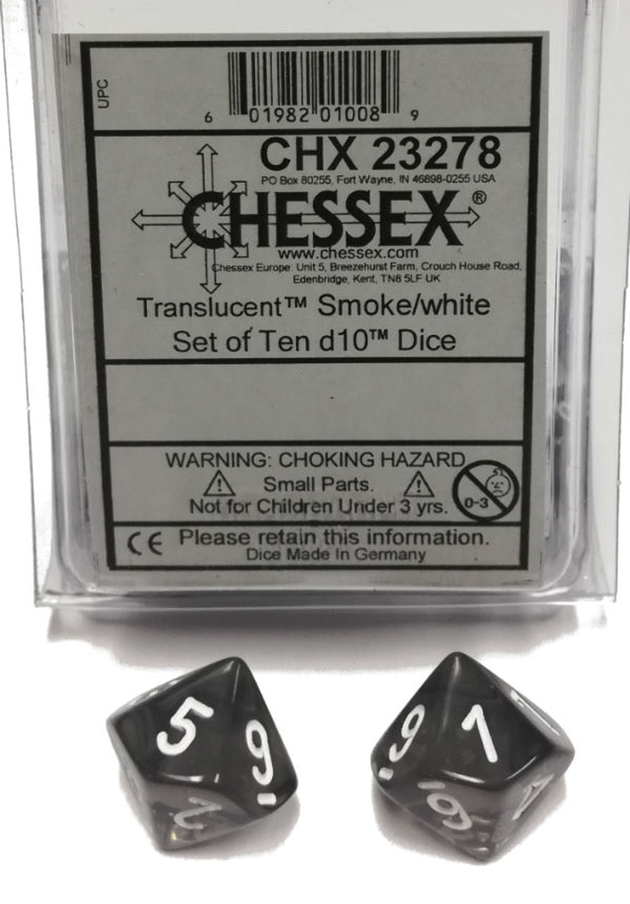 Chessex Translucent Smoke/White 10ct D10 Set (23278)