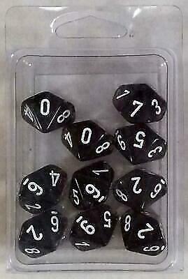 Set of 10d10 Translucent smoke dice with white numbering. This set of ten-sided dice is ideal for any World of Darkness game, from Vampire, Werewolf and Mage to Changeling and Aberrant. This dice set is standard-sized 16mm dice.