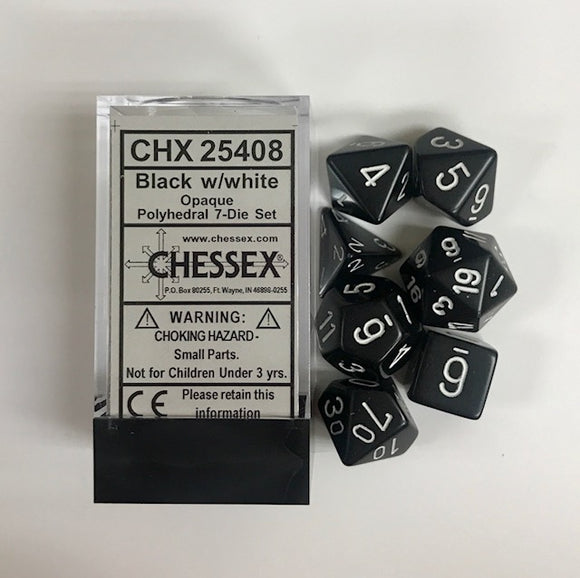 Chessex Opaque Black/White 7ct Polyhedral Set (25408)
