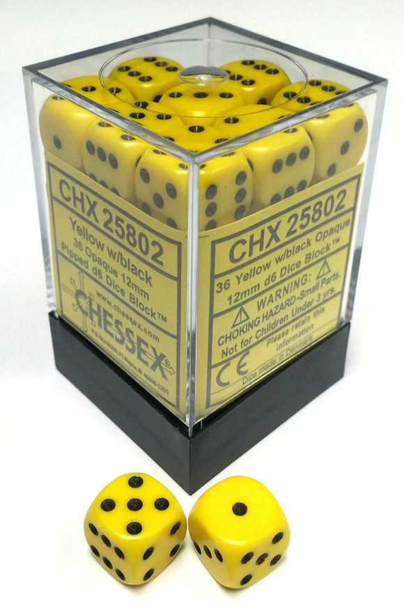 Chessex 12mm Opaque Yellow/Black 36ct D6 Set (25802)