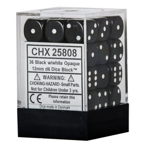 Chessex 12mm Opaque Black/White 36ct D6 Set (25808)