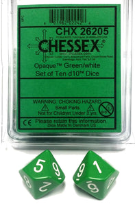 Chessex Opaque Green/White 10ct D10 Set (26205)