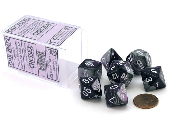 Chessex Gemini Purple-Steel/White 7ct Polyhedral Set (26432)
