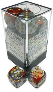 Chessex 16mm Gemini Orange-Steel/Gold 12ct D6 Set (26661)