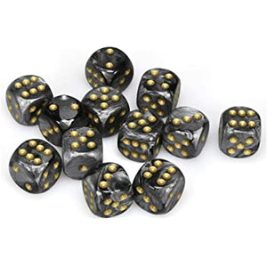 Chessex 16mm Opaque Black/Gold 12ct D6 Set (27698)