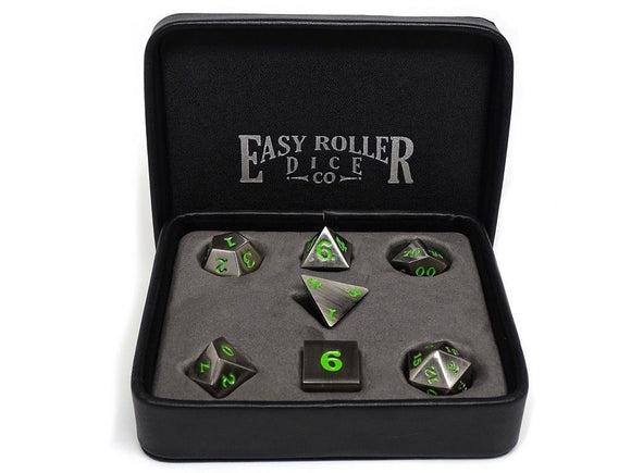 Easy Roller Metal Legendary Silver Green Signature Font 7ct Polyhedral Set