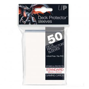 Solid White Deck Protectors with Ultra PRO's hologram quality seal. Stores and protects standard sized cards. 50-count pack. All Ultra PRO Deck Protectors are archival-safe and acid-free.