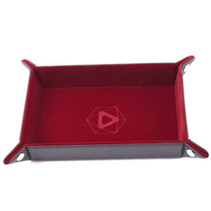Our classic Die Hard Dice original folding dice tray, with new upgraded velvet. On one side you have a super soft "fluffy bunny" red velvet, durable PU leather on the other.