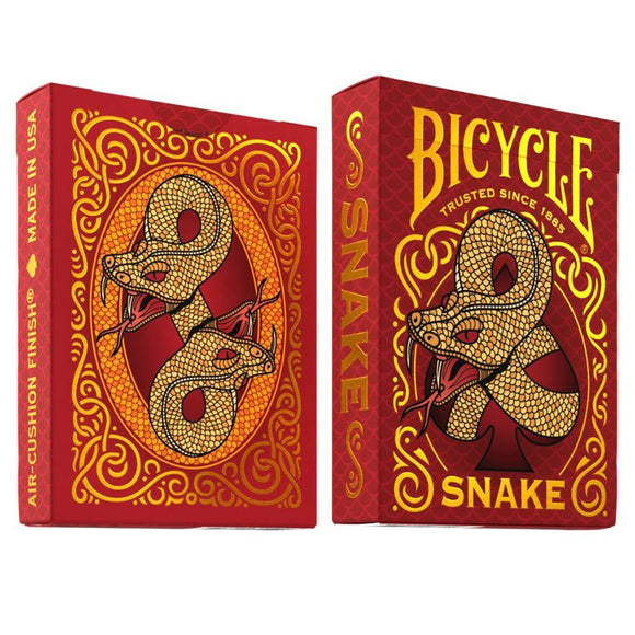 Manifest cunning wisdom and intelligence in the Year of the Snake with Bicycle Snake Playing Cards! Custom court cards dressed in kimono‐inspired garments will bring a unique flare to your next game; and the brilliant, gold foil snake on the tuck case is poised to strike!