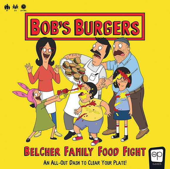 One of the Belchers left the walk-in fridge ajar, causing all of Bob’s burgers’ Food to go bad! While Tina and Louise blame Gene, he claims it’s Linda, but she guilts Bob…and before you know it, the finger-pointing turns into all-out food flinging! Get in on the messy melee by grabbing dice and tossing ingredients to clear your plate. Be the first player with three Golden Spatulas to win the Belcher Family Food Fight!