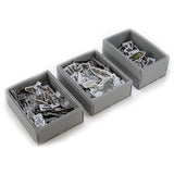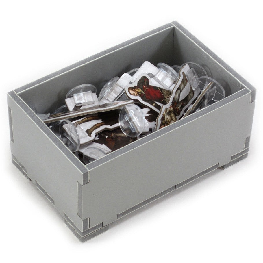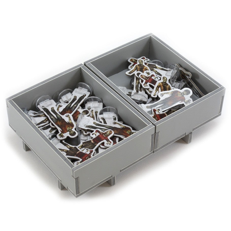 This insert is designed to be compatible with Dead of Winter®. The same insert is also compatible with The Long Night®. The design provides both efficient storage and improved game play. Many of the trays can be utilised during the game, and they greatly aid set-up and clear-away times. There is space for all cards to be sleeved.