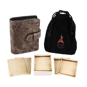 STORAGE: Store your Book of Incantations in the velvet bag included. Measures 5x7 inches and can also hold up to 150 dice. Complete with the Forged Dice Co flaming dice logo on the front