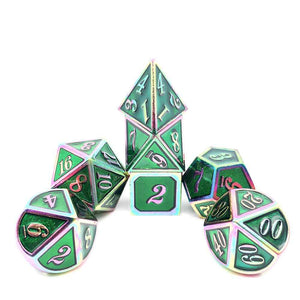 Burnt Opal with Emerald 7ct Metal Polyhedral Dice Set
