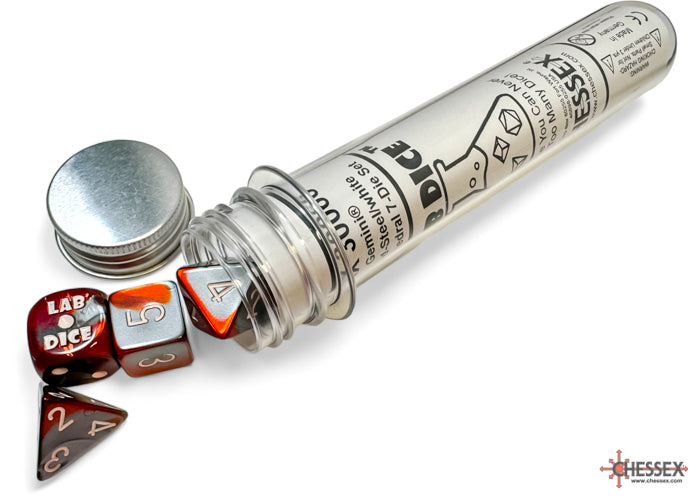 Chessex Lab Dice Gemini Red-Steel/White Polyhedral 7-Dice Set (with bonus die)