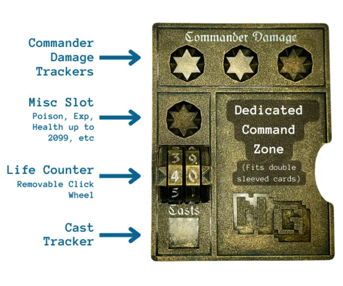 The Command Zone Tray and Life Counter provides you a structured way to keep track of the critical information during a Commander game, like:
