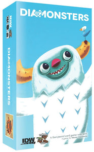 In the card game Diamonsters, each player starts the game with an identical hand of cards, each of which has a cartoonish picture of a monster and a value from one to five. Each round one card is dealt from the deck face up. Some monsters are more valuable than others, and some eat the diamonds found on other cards. Players attempt to win the round by playing the highest card in front of them, but cards of equal value cancel out. The winner of each round adds his winning card — plus the face-up card — to his collection of cards won. The first player to collect three cards of the same value or cards worth five diamonds wins the round.