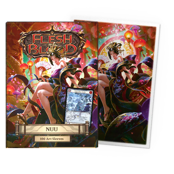 Theme your Flesh and Blood TCG decks with Nuu and express yourself with awesome high detail artworks! These artwork sleeves have the same textured back as our regular Matte sleeves with the shuffle feel you know and love.
