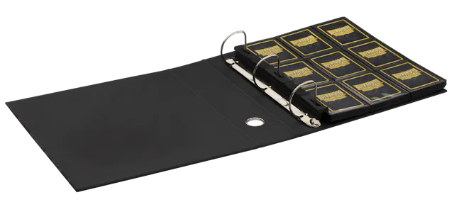 The Sanctuary Slipcase Binder is a secure TCG collection storage option for your shelving system. The stylish, rigid framework houses a sturdy binder and is a great place-saver for your shelf. The heavy duty 50mm D-rings lock your Dragon Shield Pocket Pages* into place. When shelved, Pocket Pages rest on the bottom of the slipcase, so the weight on the binder mechanisms is minimized.