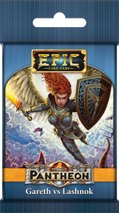 Epic Card Game: Pantheon is an expansion for the Epic Card Game that's packaged in six non-random booster packs (Furios vs Maligus, Helena vs Zaltessa, Angeline vs Scara, Gareth vs Lashnok, Shadya vs Valentia, and Riksis vs Tarken), with each booster pack containing twelve new game cards, 2 deity/token cards, and 1 double sided token card.