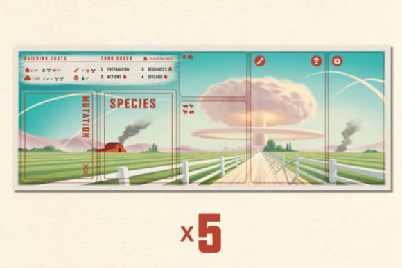 These beautiful player mats will make your game of Farms Race more immersive and keep your table a bit better organized. Please be aware that the standard edition of Farms Race does not have components for a fifth player, but the Deluxe edition does!