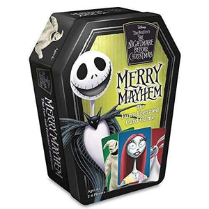 Join Jack, Sally, and all the residents of Halloween Town in a fast-paced, card-playing frenzy! Race to play all your cards as you madly match and stack characters. Then use your Moon cards to snatch piles and score. get the most points, and you'll be the Pumpkin King of Merry Mayhem!