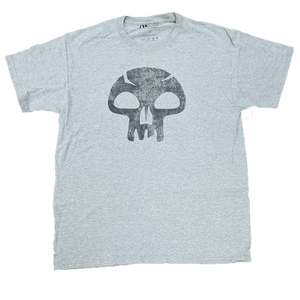 Light grey heather T-shirt featuring a distressed black mana symbol