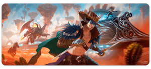 Playmats feature popular Magic: The Gathering artwork. Made with a soft fabric top to reduce damage to cards during play and a non-slip rubber backing to keep the playmat from shifting during use, playmats enhance the gameplay experience. With dimensions of approximately 24 in. x 13.5 in., a playmat also makes an excellent oversize mousepad for home or office.