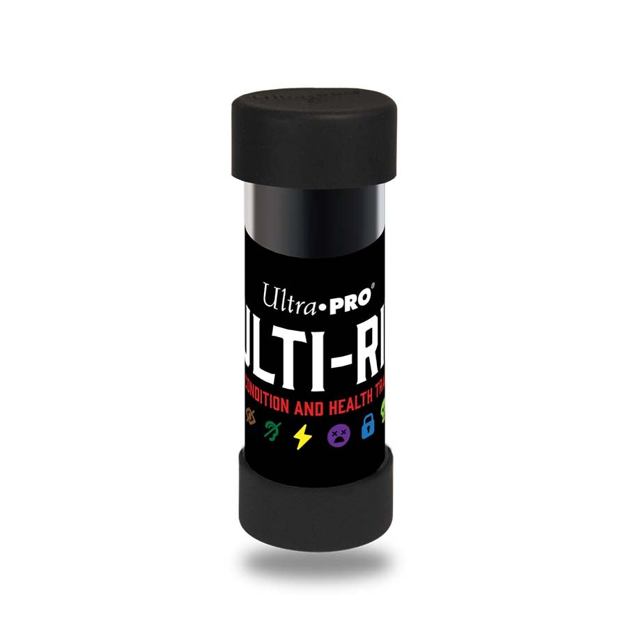 Easily track your tabletop status conditions, health points, and more with Multi-Ring Rotating Condition and Health Trackers! This set of ten versatile tracking rings feature 10 different trackable icons on one side, and the numbers 0-9 in a red-to-green gradient on the other, so you'll never miss a single detail of play. With just a turn of the ring, you can track rage charges, concentration, grappled status, or anything you want using the colorful, adaptable icons. Each ring has a 1" inner diameter, which will fit around the base of most tabletop figures. The included clear storage tube makes these rings easy to transport and display, so you can take them with you anywhere you go!