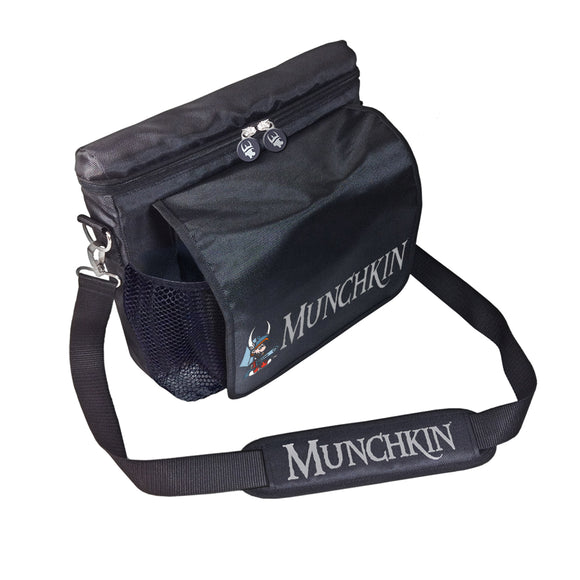 Our Munchkin Messenger Bag is the perfect accessory for a Munchkin gamer on the go! It's designed to store over a thousand cards—two core sets and two Munchkin Boxes of Holding — and still leave you room for accessories, water bottles, pencils, and dice!