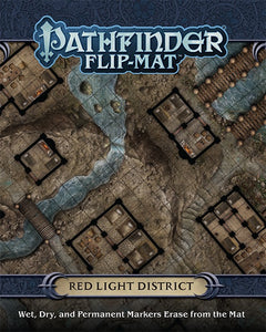 Whether your party is looking for contacts in the criminal underworld or fleeing from an angry thieves’ guild, no Game Master wants to spend time drawing every darkened alley and ramshackle storefront. Fortunately, with Paizo’s latest Pathfinder Flip-Mat, you don’t have to! This line of gaming maps provides ready-to-use fantasy set pieces for the busy Game Master. This double-sided map is the perfect place for urban adventures and even matches up with Pathfinder Flip-Mat: Pub Crawl, providing a setting for any encounter needing a seedy atmosphere!