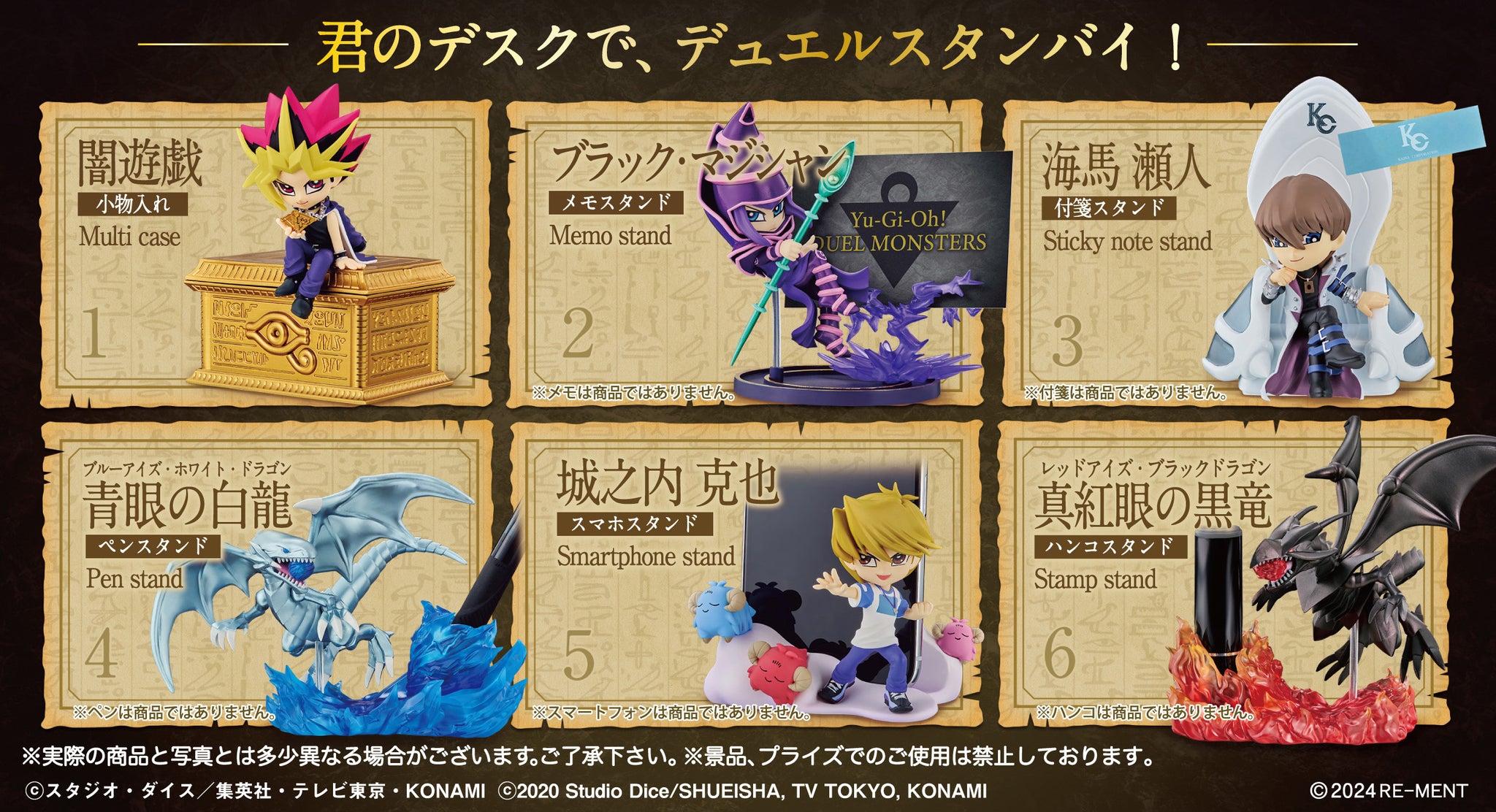 Your favorite characters from "Yu-Gi-Oh Duel Monsters" are ready to help keep your desk more organized with this group of items from Re-Ment! Each carefully sculpted desk accessory can help you keep small items in place on your desktop; they're also happy to hang out in your collection.