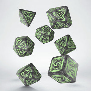The times are changing and this time the newest Starfinder Adventure Path Against the Aeon Throne is faster, better and with the bigger bang. It lasts only three months, but this isn't the reason for denying a dedicated dice set. For us in Q WORKSHOP this is no problem. Whether it's three volumes or six, the Starfinder Adventure Path Dice Set will still consist of seven master crafted, complex engraved dice from best material, that you've come to expect. We chose rocket jet smoky color for dice and green paint for engravings, that resemble a starship’s hatches. Green is the color of hope, that cannot be lost, even if all you can see is sand in your face. Remember the classic saying from some well known galaxy questors: “Never surrender and don’t give up!”. This campaign mostly takes place in many cosmic locations, where the only way is via flight and through a fight. We hope that this set will be your best friend in the dark void where only stars and lucky rolls could help you find the way. The conflict with great Azlanti Star Empire is nasty, we know, but this is the time for heroes. Play long and prosper Dear Friend!