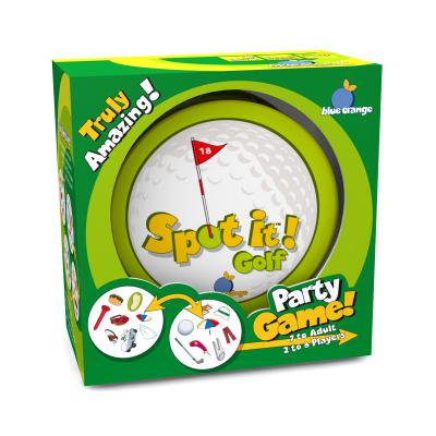 Keep a steady foot on the green and both eyes on the cards. You may have a perfect shot but how fast can you spot? Challenge your golfing friends to a different kind of match play. Spot it! Golf is a party game consisting of 55 cards, each decorated with 8 golf related symbols. There are more than 50 different images of elements commonly seen on the course. One (and only one) matching symbol exists between any two cards. Spot it to win. Play five different fast-paced games. For newcomers to the sport, this game is a sure-fire way to become familiar with golf terms and lingo. Get on the fairway the fun way with Spot it! Golf and prepare to tear it up.