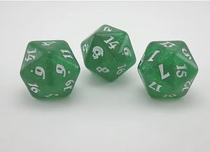 Death is upon us all! The Black Death d20 comes in several color options and is larger than standard sized d20s (23mm instead of 20mm). These dice feature a deathly skull design on the 20 face.
